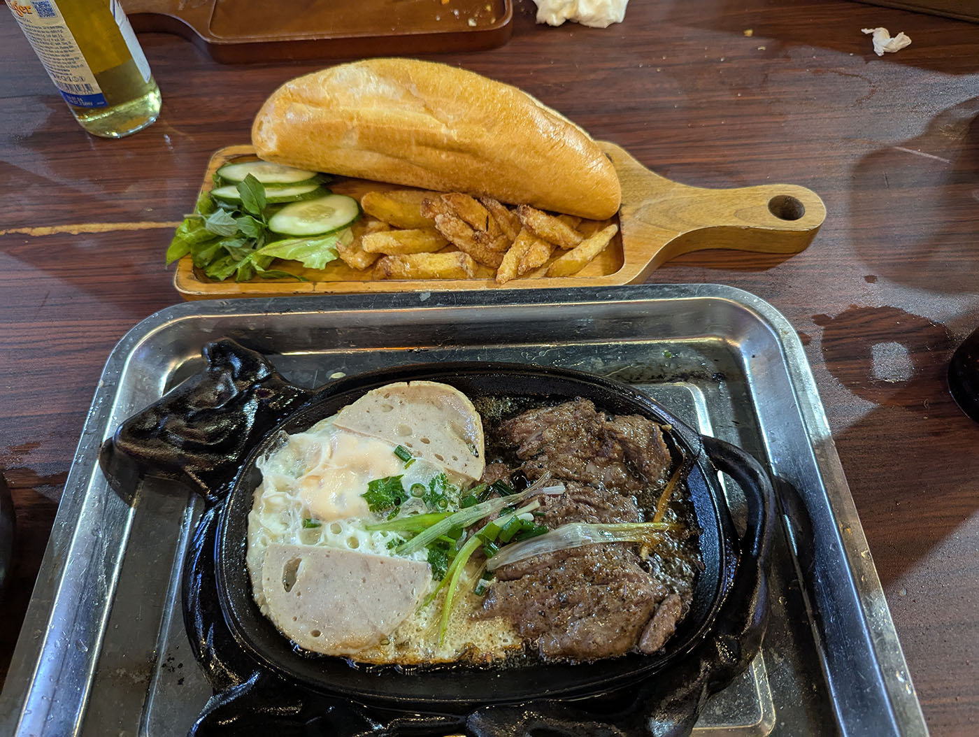 - 19:00 地元食堂でステーキプレートとバインミー+ビール3本
