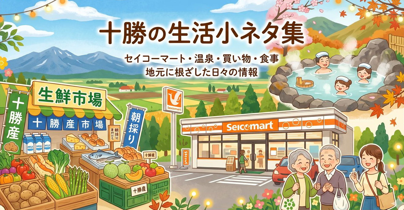 十勝の生活や暮らしにまつわる小ネタをまとめたカテゴリです。スーパーの惣菜、セイコーマート、温泉、駅前の空気、買い物や移動の感覚など、観光では見えにくいローカルな日常を、月1で通う関西人の視点で記録しています。十勝旅行をもっと深く楽しみたい人にも、十勝での暮らしの雰囲気を知りたい人にも役立つ読みものを集めました。