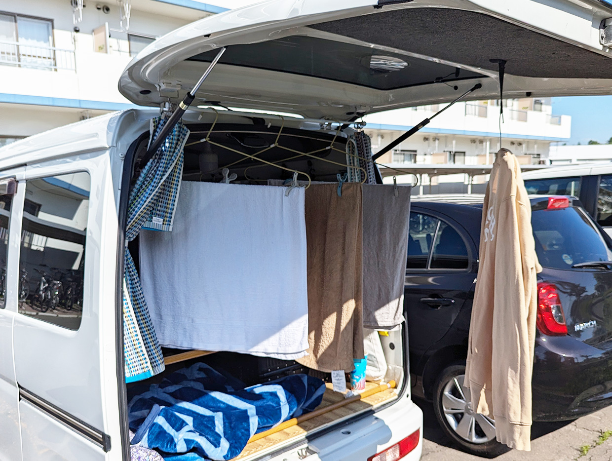 帯広の拠点で6時に起床。まずシャワーを浴びて1日のスタートを切る。
