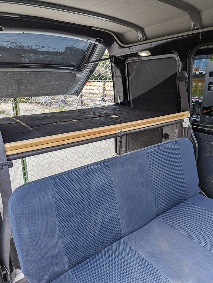 ハイゼットカーゴの後部座席と荷台の棚。後ろの荷台は取り外して納車いただきました。