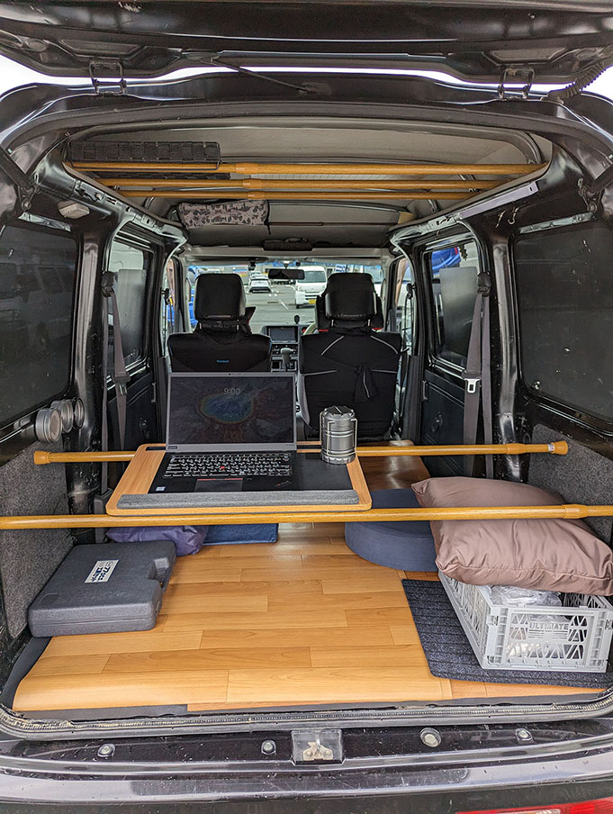 こうして第一弾の車中泊仕様が完成したハイゼットカーゴ(クロ)は、バンライフの第一歩にふさわしい相棒となった。この車といったいどんな旅ができるのか。