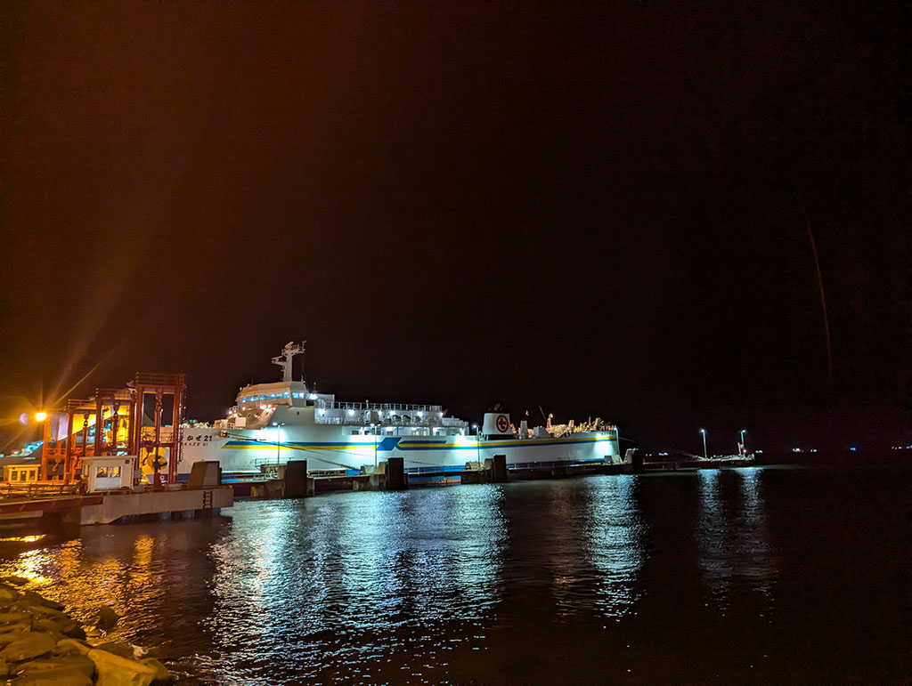 20時半に店を出て、海岸でしばし休憩。夜の潮風が気持ちいい。