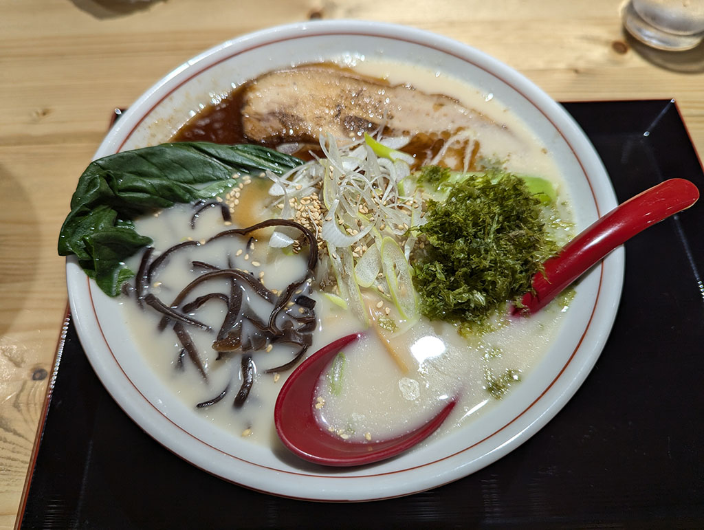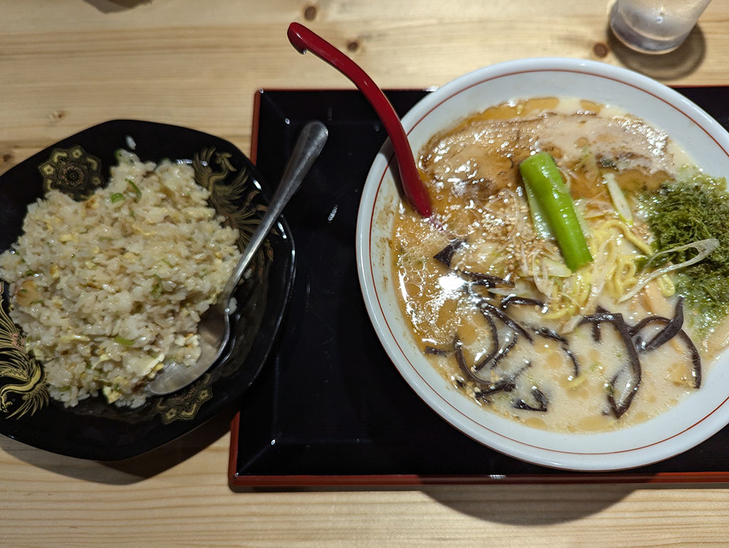 8人分のカウンター席の椅子が2脚1組でくっつけられていたが、これは客の座る位置を誘導するためか? ちょっとした店舗運営の工夫を考えながら食事をとる。