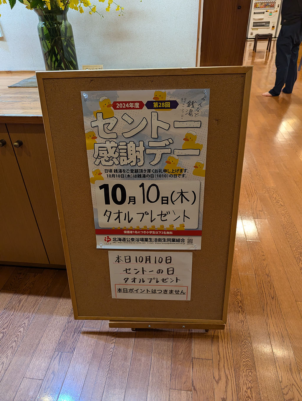 オベリベリ温泉水光園は10月10日はセント―感謝デー