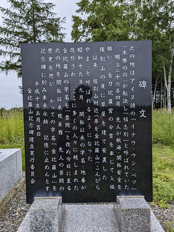 幕別の開拓時代の苦闘を偲ぶ金比羅山記念碑
