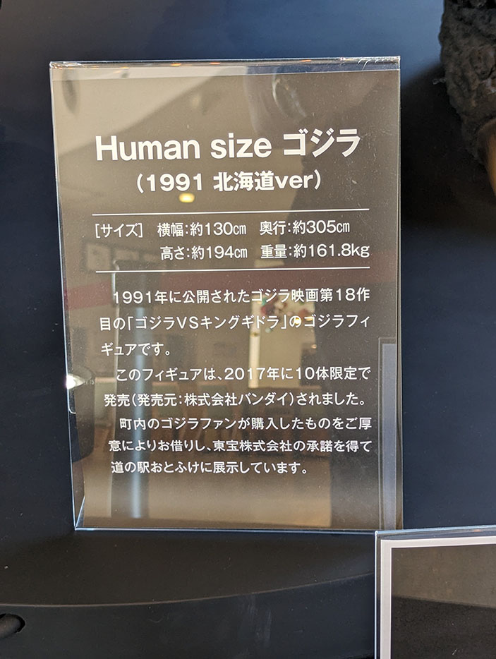 音更町は町内のゴジラファンから無償で巨大ゴジラフィギュアを借り受け、映画会社「東宝」の承諾を得て展示しているそうだ。