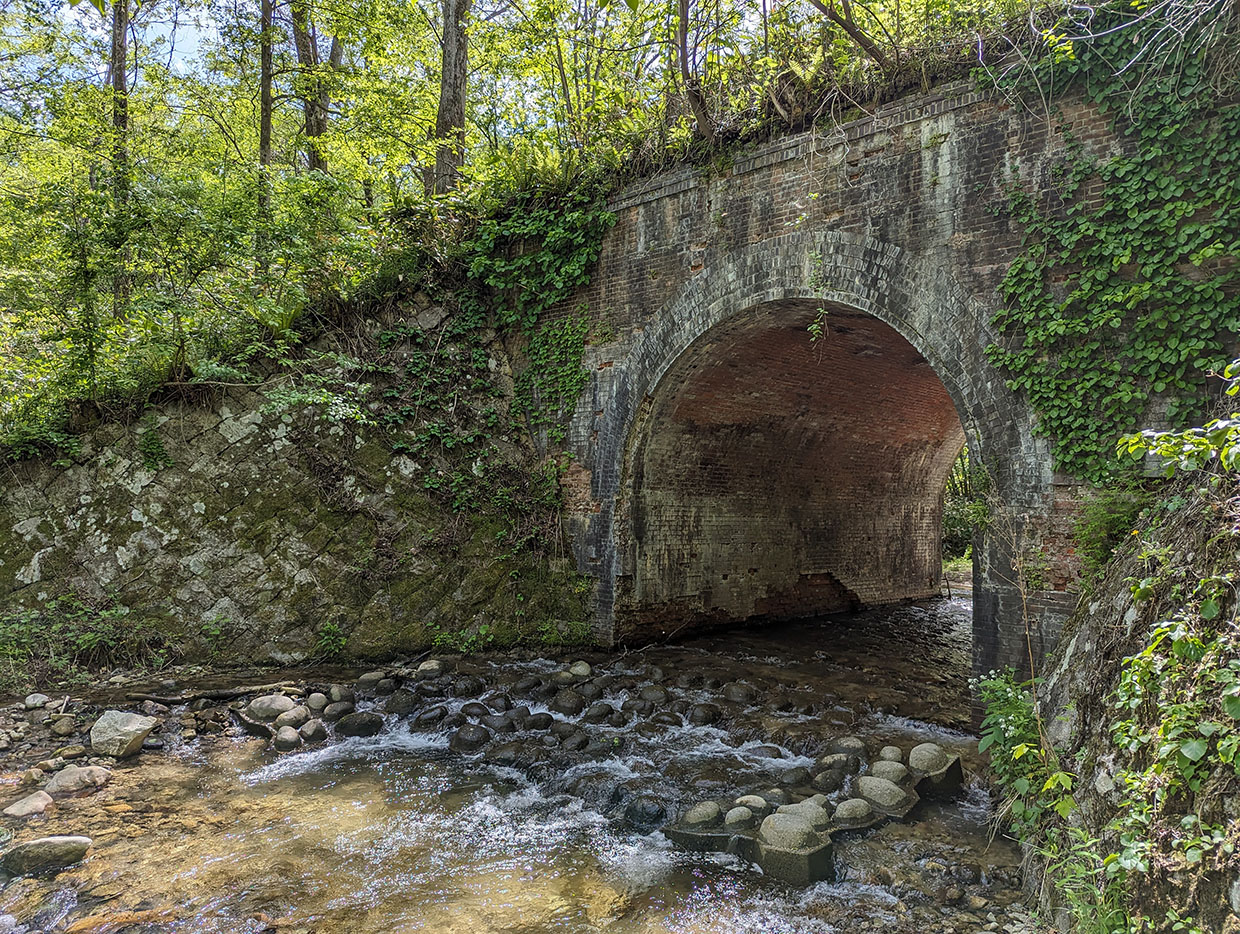 川のせせらぎをBGMにして、散策路から見上げる橋梁は、過ぎ去った時代の物語を感じさせた。
