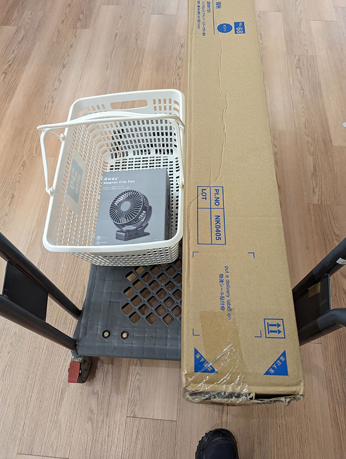 10時50分、干していた布団を取り込み、買い物のためダイソーやニトリへ向かう。13時には拠点用の【広告】シングルパイプベッドや突っ張り棒、そして車中泊用のミニ扇風機などを購入して帰路につく。