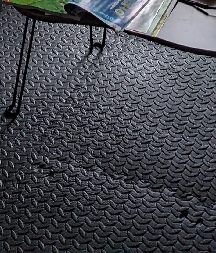拠点の模様替えも兼ねて、朝から作業を開始する。【広告】黒の大判厚手のジョイントトレーニングマットを拠点にも敷いてみたところ、これが大正解だった。