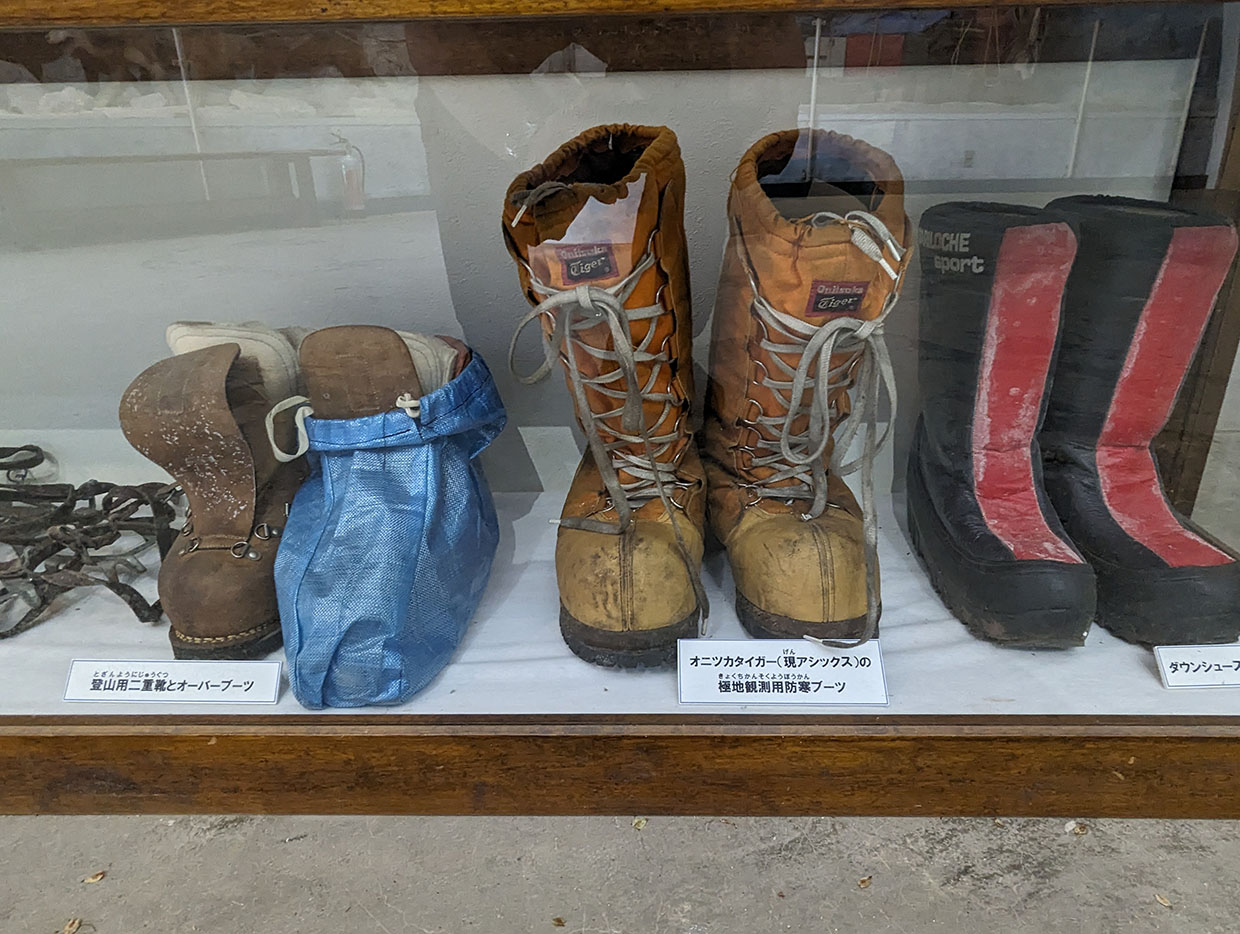 登山用二重靴とオーバーブーツ。オニツカタイガー(現アシックス)の極地観測用防寒ブーツ、ダウンシューズ。
