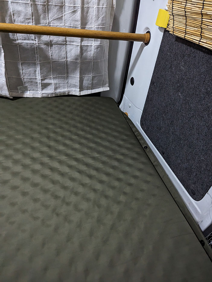 VENTLAX キャンプマット エアーマット インフレーターマットを使用。1人寝のときのサイズがジャストで、バルブを開くだけで自動で空気が入り3分で使用可能なので、空気をいれるのは車内にいたままで可能。