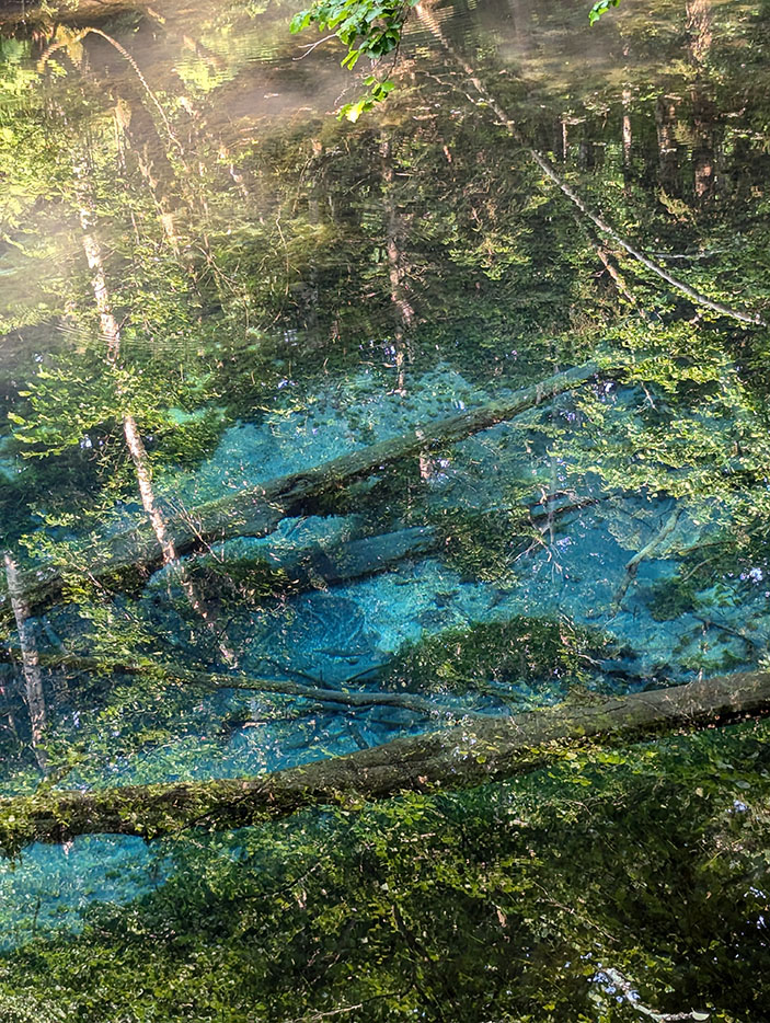 次に向かったのは「神の子池」。7時40分に到着した。ここも電波は届かず、外部との連絡は断たれるが、それが逆に神秘的な雰囲気を引き立てている。観光客は自分以外に誰もおらず、まるでこの場所を独り占めしているかのような感覚を味わえた。