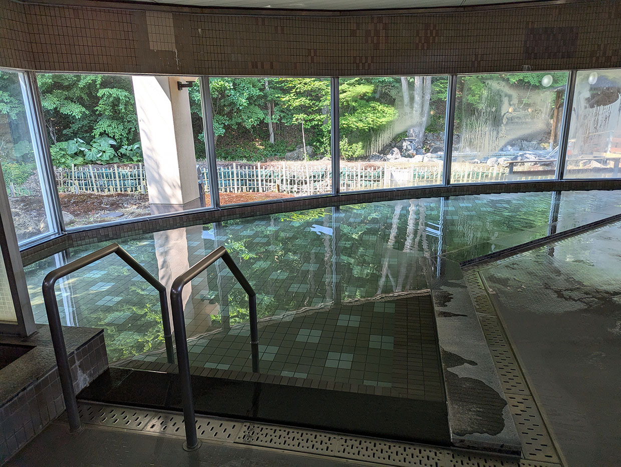 温泉に入る前、ふと体重計を見つけて測ってみたところ、やや増え気味の数値にたショック。ここでさすがに節制しようと心に決めたけど、温泉でリフレッシュすると、その決意も少し緩みそうになる。