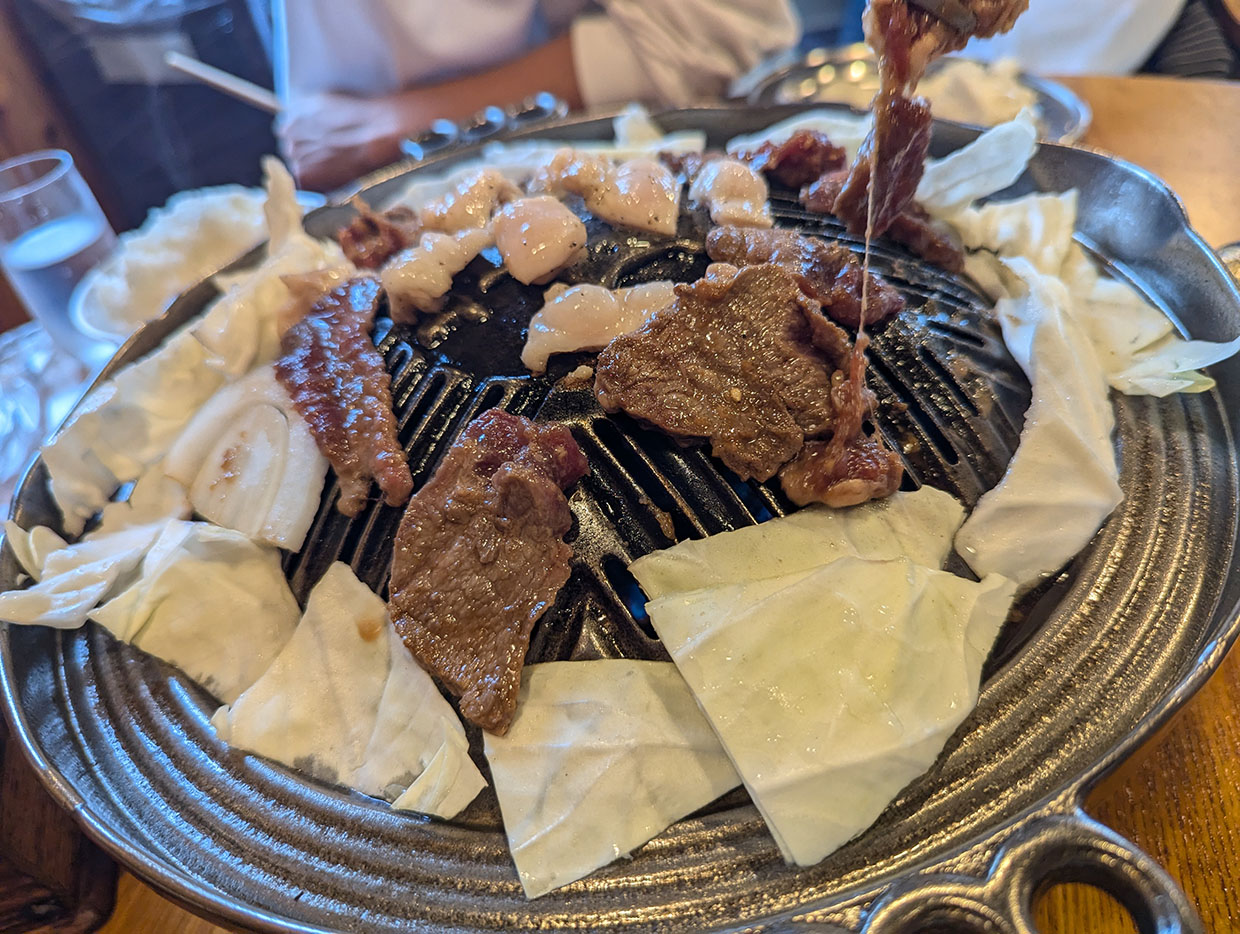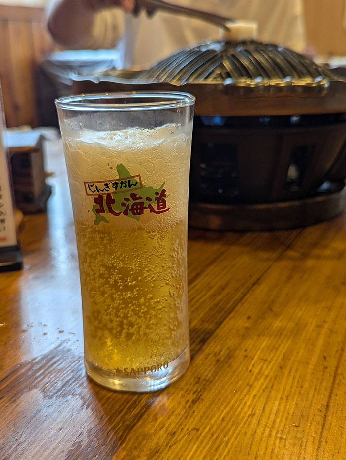 13時、帯広の「じんぎすかん北海道」へ向かう。ここはすでに何度かリピートしているお気に入りの店。店内に入るやいなや、鉄板で焼かれるジンギスカンの香ばしい匂いと煙が漂ってくると、「これこれ!」と自然に顔がほころぶ。
