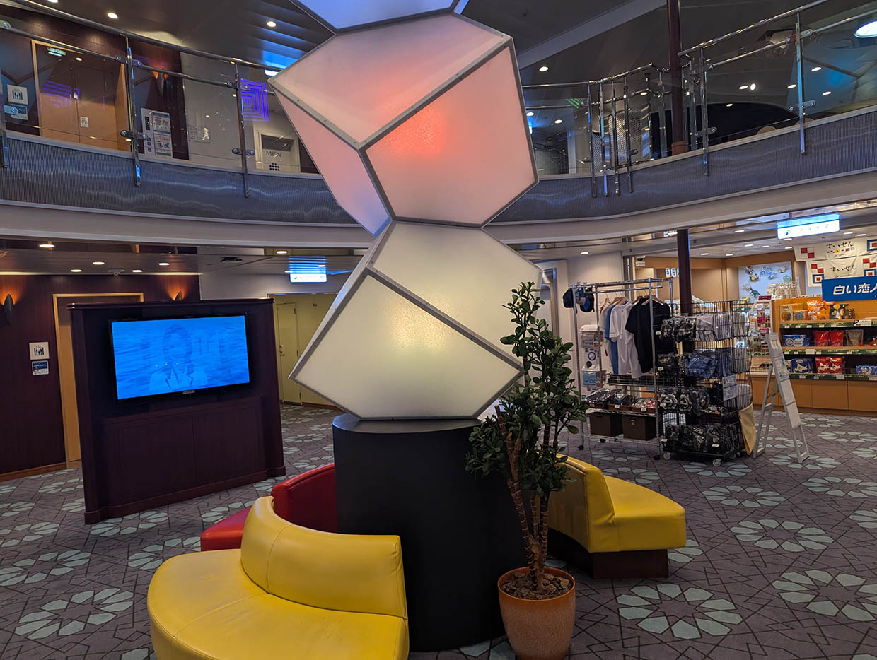 8時、大浴場へ。 サウナでじんわり汗を流してから、露天風呂へ。外には太平洋の水平線。風が流れる。 船の揺れと潮の香りのなかで、完全に“整う”という瞬間を味わう。 旅の始まりとして、これ以上ない贅沢。