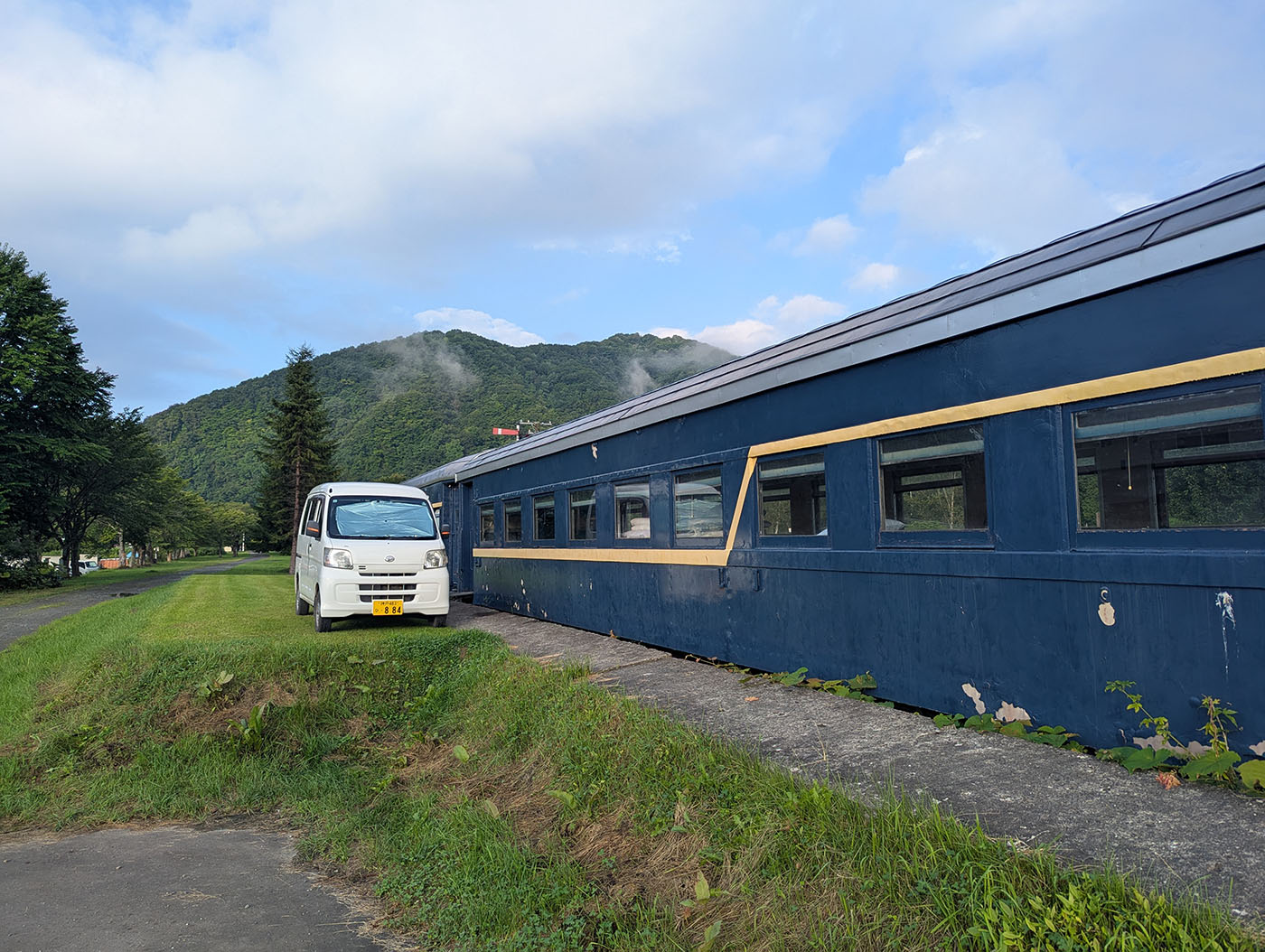 曇天の十勝で目覚めた朝。ただの移動日のはずが、スポーツカーの群れに囲まれて十勝スピードウェイへ。夜は廃駅の車両で、雨音を肴にひとり晩酌。