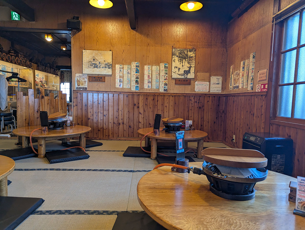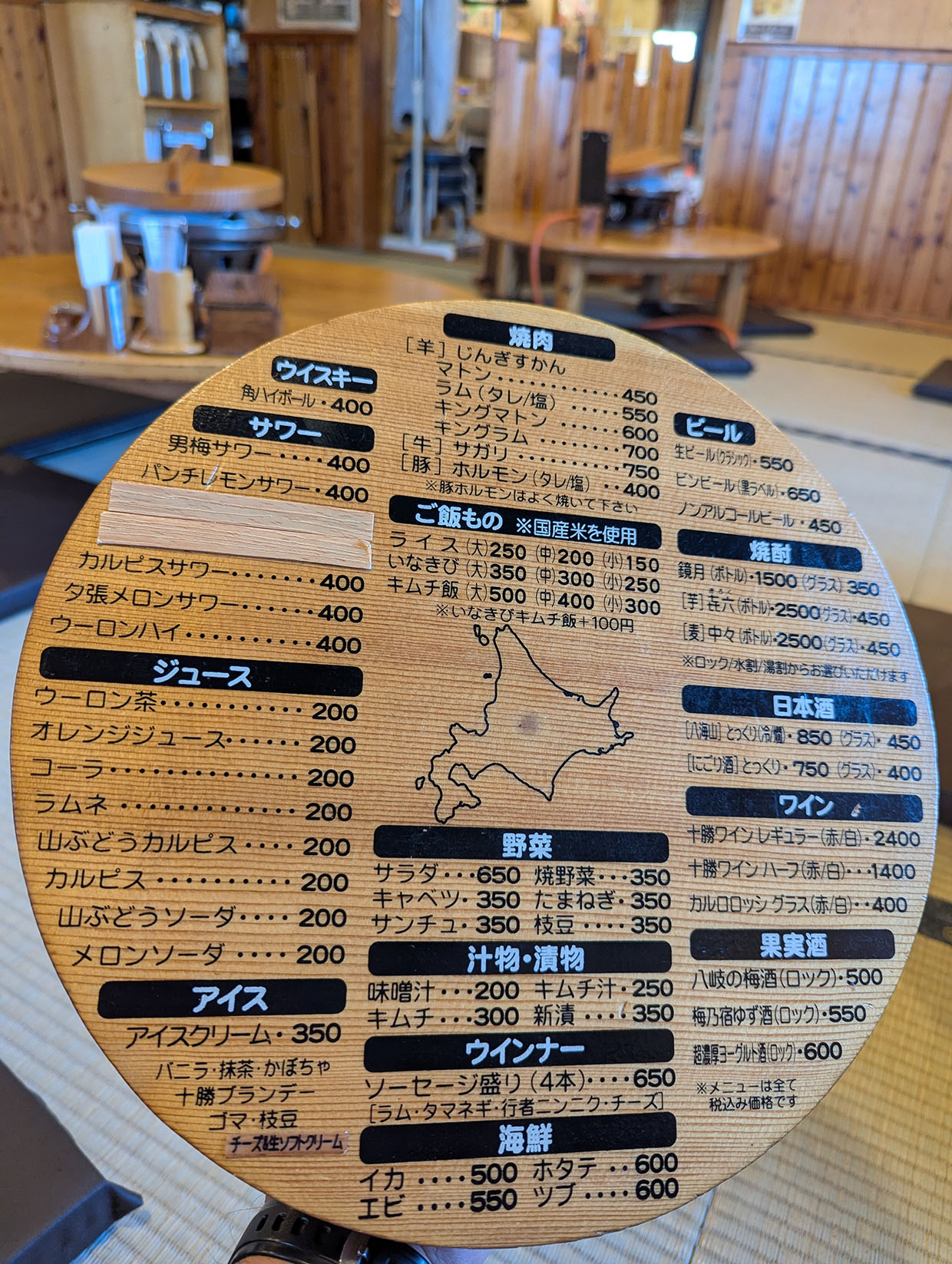 車検の間に、帯広の名店「じんぎすかん北海道」へ。11時15分に到着し、羊肉の香ばしい香りに包まれる。