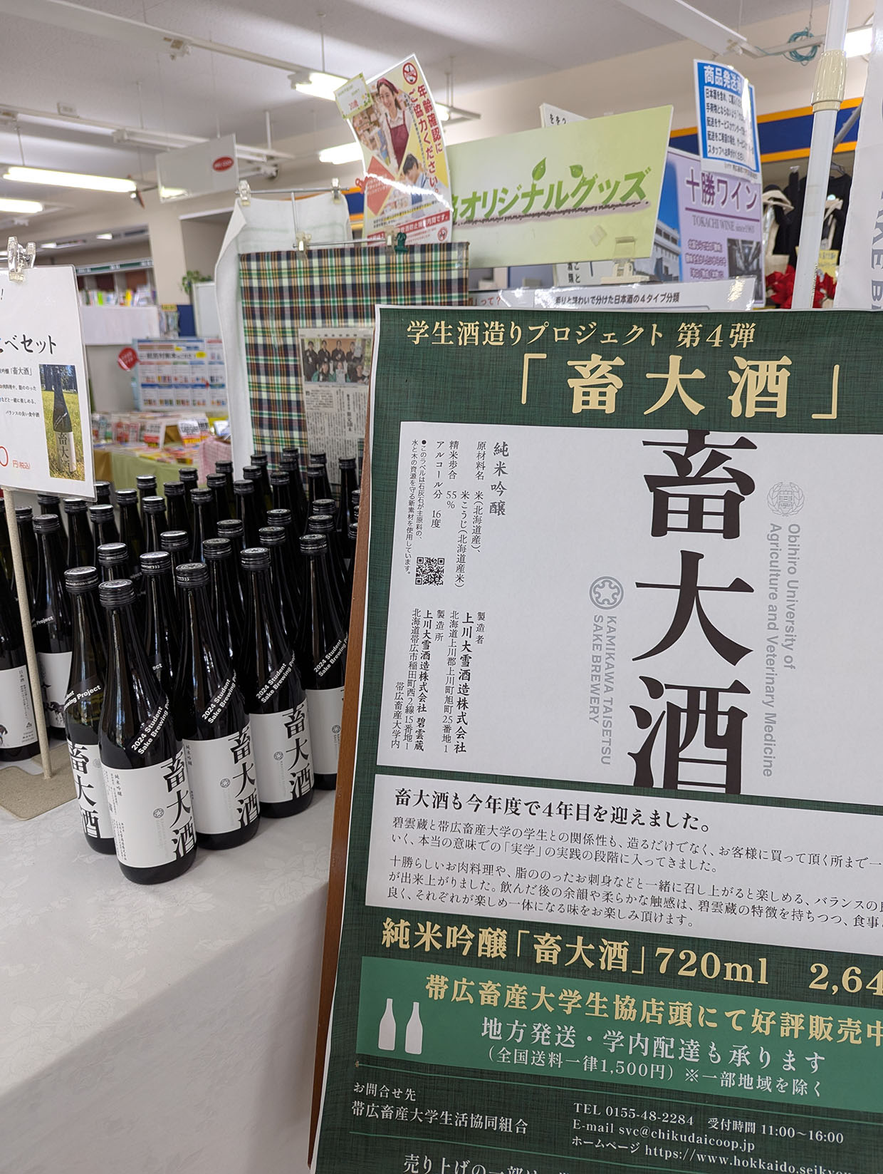 帯広畜産大学には、上川大雪酒造が運営する「碧雲蔵(へきうんぐら)」という酒蔵があり、そこで「畜大酒」などの日本酒が醸造されています。