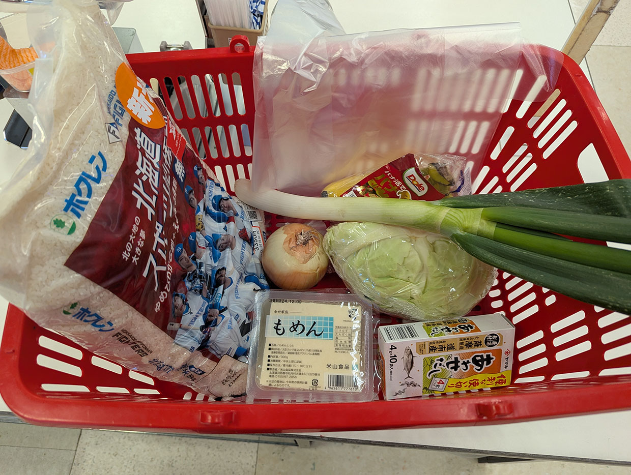 米と野菜と豆腐を買い出し