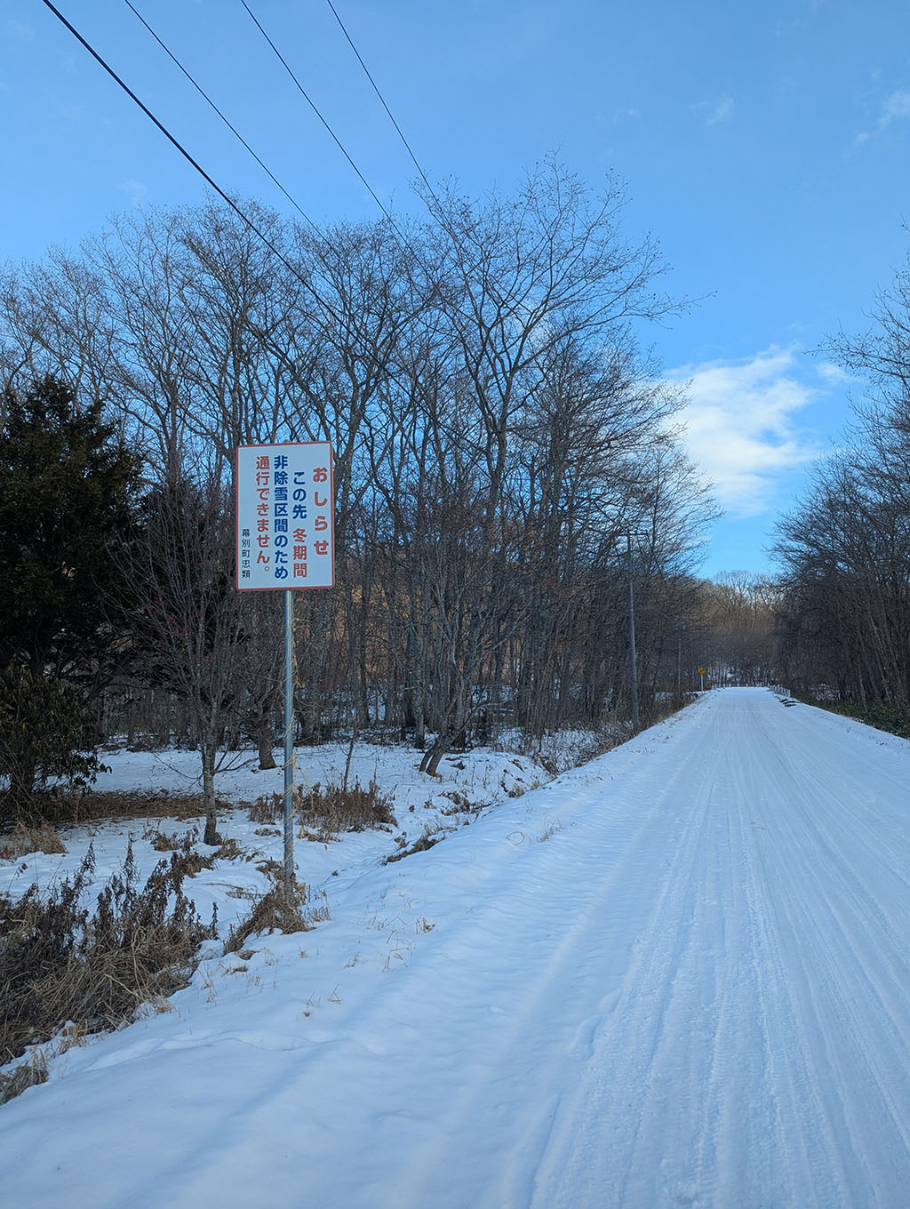 14時26分、道の駅を後にして丸山展望台を目指すが、冬期間は非除雪区間で断念。その後、シーニックカフェちゅうるいを目指すも同じく通行不可。