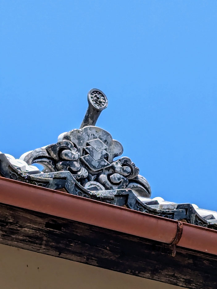 土蔵の鬼瓦に「三階菱」の岩崎家の紋