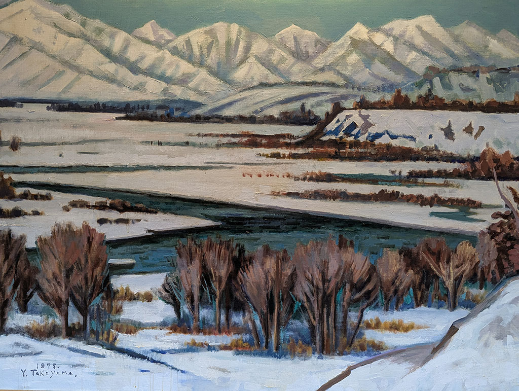 平原社会長の瀧川秀敏さん(54)は「(日本の近代 洋画を代表する画家) 梅原龍三郎さんの影響もあるのでは」と話す。魅力あふれる豪快なタッチと華やか な色合いに、十勝の芸術文化を支えた故人の気質がのぞく。(説明文引用)