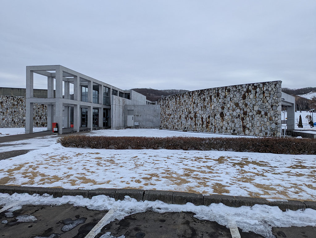 この建物はナウマン象の姿を想像し、玉石を埋め込んだ外壁は象の肌、記念館までの「時の道」と呼ぶ長い歩道は鼻と牙、そして両側の円柱では古生物の誕生から人類までの進化を伝え、現代空間から太古の世界へと大きな時の流れを表現しており、次第ににナウマン象の生息した世界へと誘い込むタイムトンネルをイメージしております。