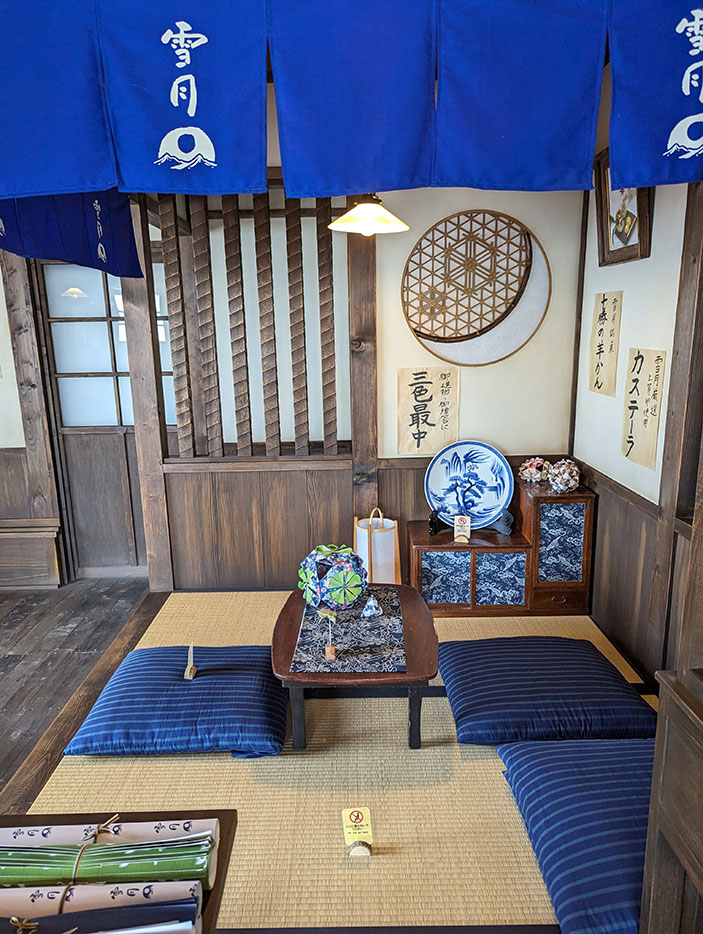 雪月の店内。今にも、雪次郎(山田裕貴)、妙子(仙道敦子)、雪之助(安田顕)、 とよ(高畑淳子)が右奥からかしましく出てきそう。