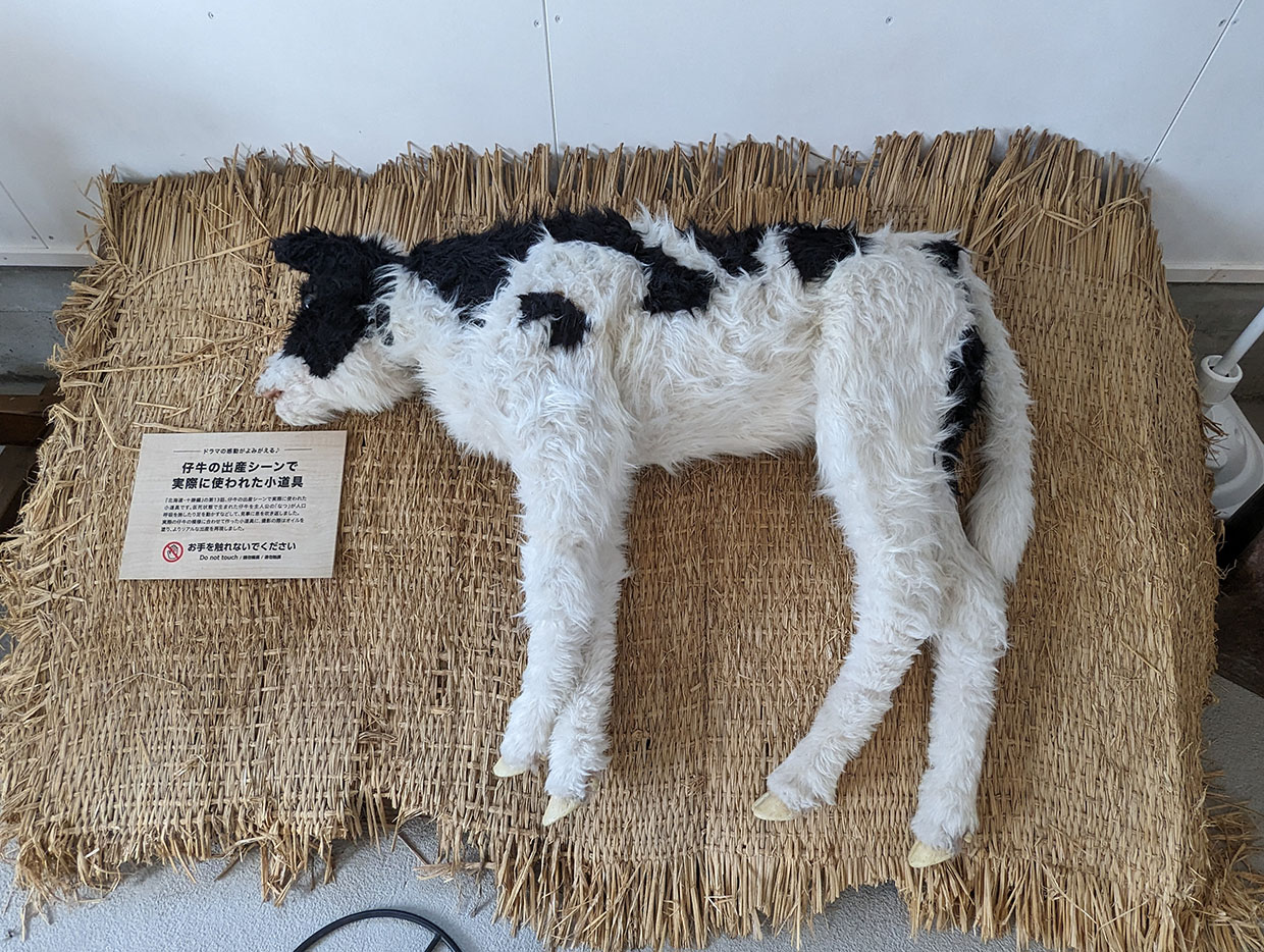 仔牛の出産シーンで実際に使われた小道具。ドラマの出産シーンがよみがえる。
