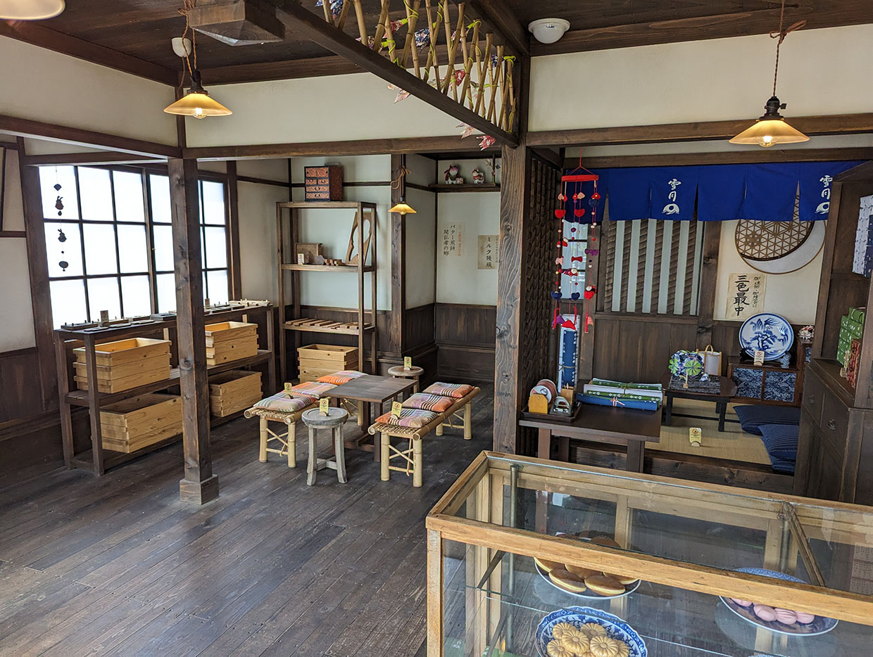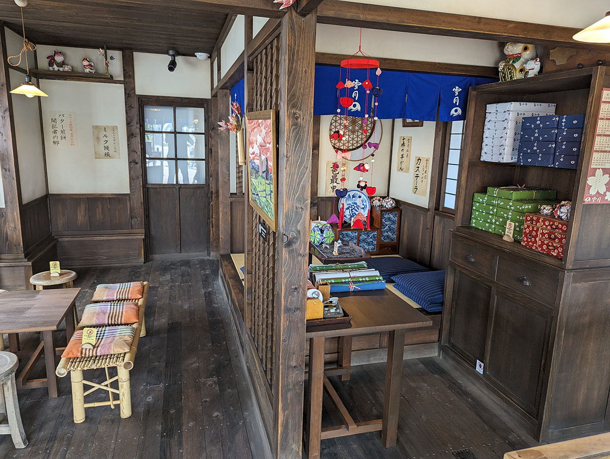 雪月の店内。今にも、雪次郎(山田裕貴)、妙子(仙道敦子)、雪之助(安田顕)、 とよ(高畑淳子)が右奥からかしましく出てきそう。
