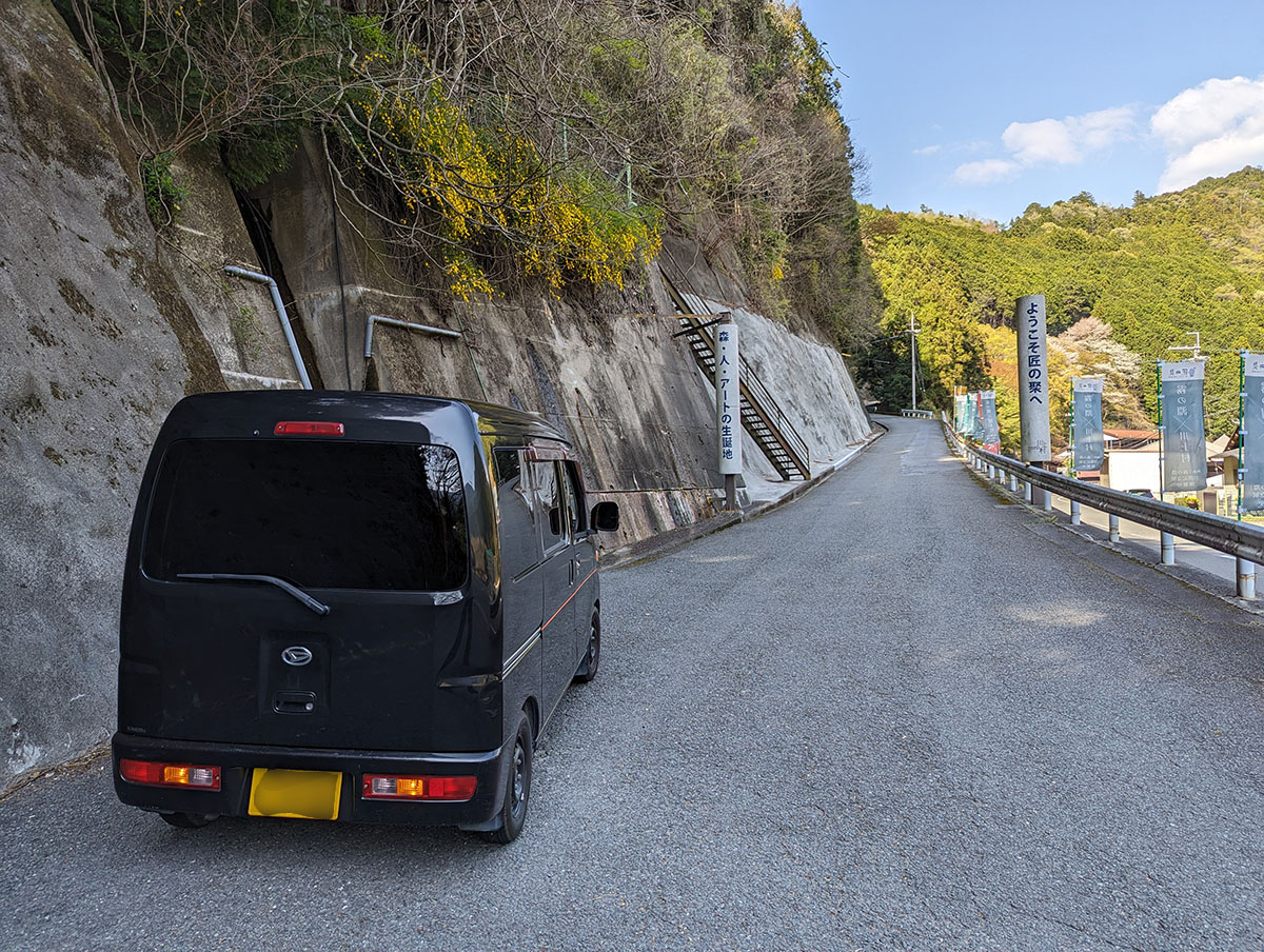 なりさん【奈良・吉野 桜とアートの車旅】川上村「匠の聚」でのコテージ宿泊を拠点に、道の駅グルメやサイクリング、吉野のうどん、アートギャラリー見学、脳天大神への参拝まで──自然・文化・祈りを味わう2日間の旅。軽バン旅×宿泊体験の新たな旅スタイルも。
