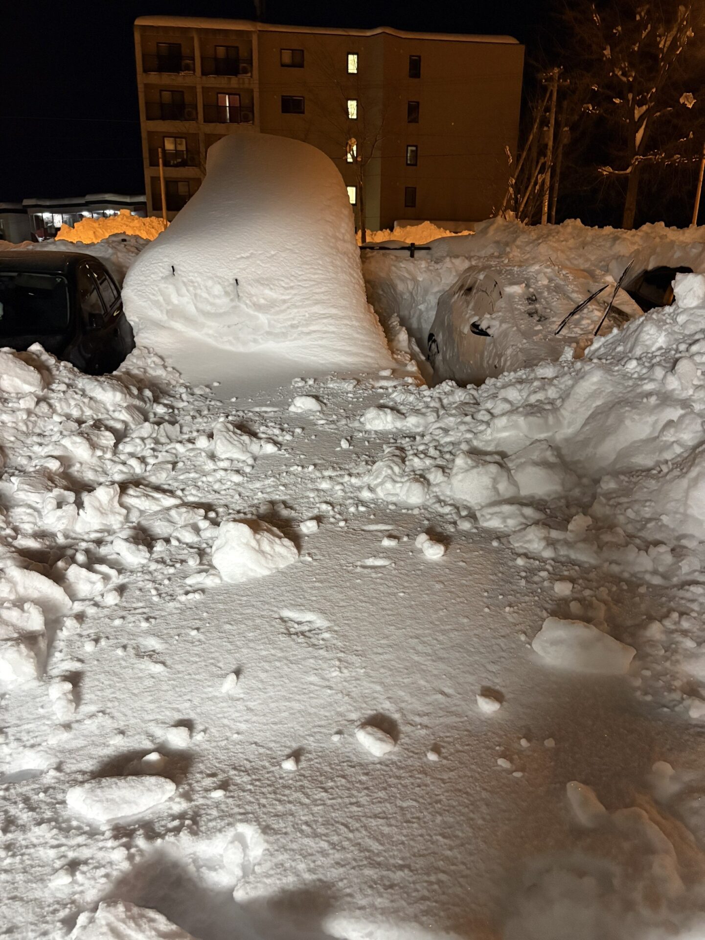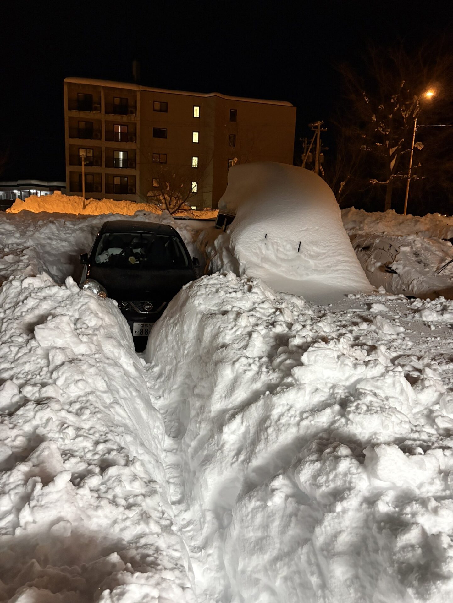 駐車しているハイゼットカーゴもすっかり雪に埋もれ、その姿はほとんど見えなくなっている。