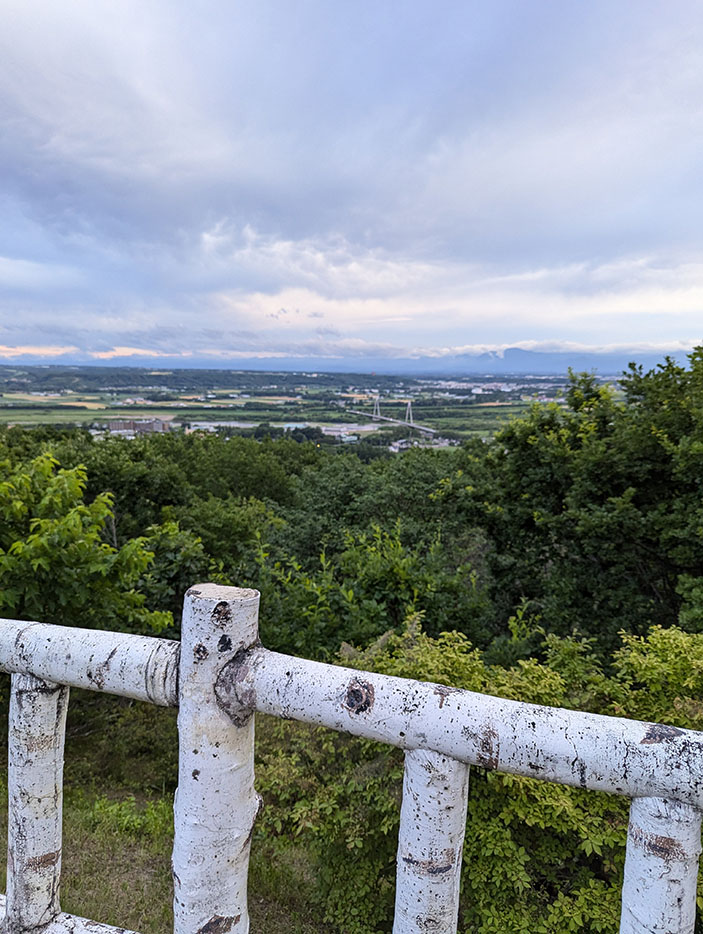 天気予報を確認すると、日の入りは19時頃とのこと。急いで十勝が丘展望台へ向かったけど、曇り空で夕日は見えず。